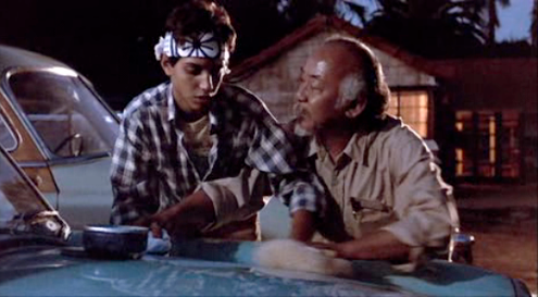 Alas, the story contained here remained a very straight-forward quest to learn ‘80s trivia, then use it to find a key where more ‘80s trivia was needed to complete a quest before wax-on-wax-offneeding more ‘80s trivia to unlock a gate which then required additional ‘80s trivia to complete a task. It became about as repetitive as Mr. Miyagi’s “Wax on, wax off!” in Karate Kid. Meanwhile, the fairly interesting dystopia real world made briefer and briefer appearances as Wade got richer until anything outside of the game almost ceased to exist. I suppose, Wade really took Alex Keaton’s philosophy to heart and decided “People who have money don’t need people.”